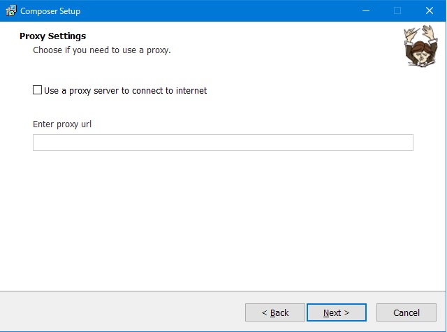 composerインストール「proxy settings」画面