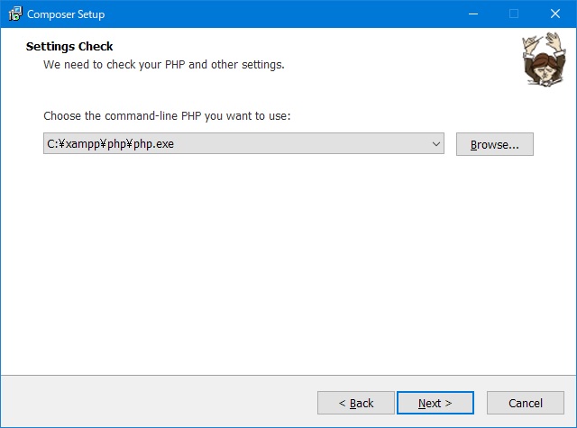 composerインストール「setting check」画面